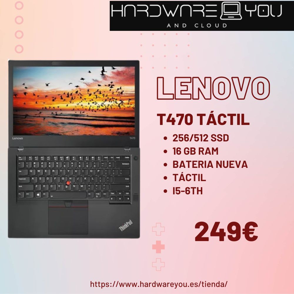 ![Lenovo ThinkPad T480 TÁCTIL| I5 -8TH | [Reacondicionado Premium] WIN 11 PRO | OFFICE + NORTON DE REGALO](https://www.hardwareyou.es/wp-content/uploads/2024/02/lenovo-thinkpad-t480s-i5-8250u-8-gb256-ssd-w10-14-400x400.jpg)